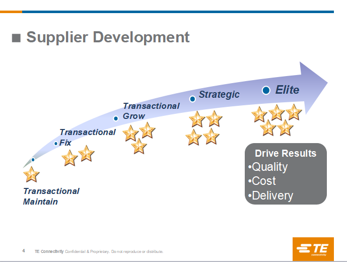 今年通过全体同仁的努力与付出,获得了TE客户对我们的评价,我们已经正式成为TE客户的4星级战略供应商。在这里,我代表项目一部,感谢大家今年来对TE项目的支持,这是大家的成绩,希望接下来,大家一如既往的对TE项目的支持,向终极目标奋斗,力争成为TE客户5星级精英供应商。